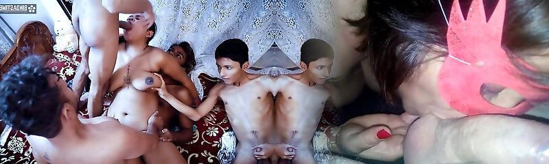 Indian Desi Lustful Super-steamy Bhabhi Has Gangbang with Five Huge Cock Boys and Cumshots (Hindi Audio)