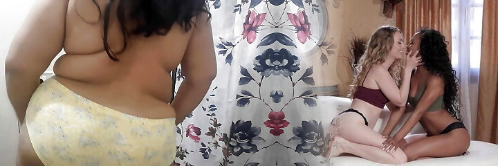 Oh no! Teen girl Schoolgirl finds out her stepsister fucking with her step-father when she gets home