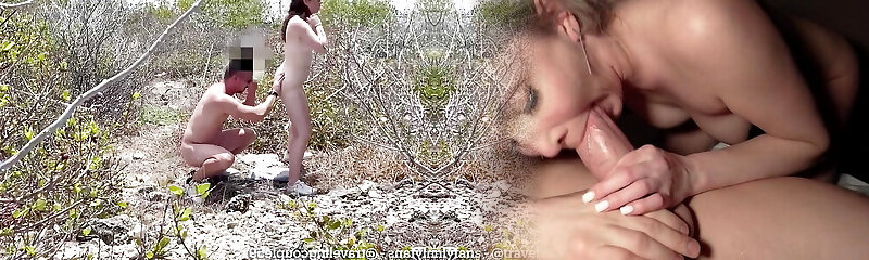 Wife sharing on nudist beach while hubby records, teenage whore gets fucked by a random guy on a naturist beach
