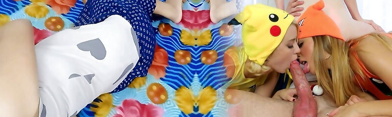 Sexy naughty girl instructs the teenie how to fuck and gives her a Christmas present with a good sucky-sucky.
