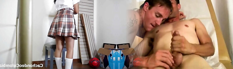 Bro changed his mind when younger stepsis switches school uniform in front of him