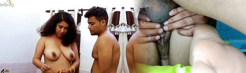 Horn-mad dark skinned Indian hubby eats raw muff of busty wife