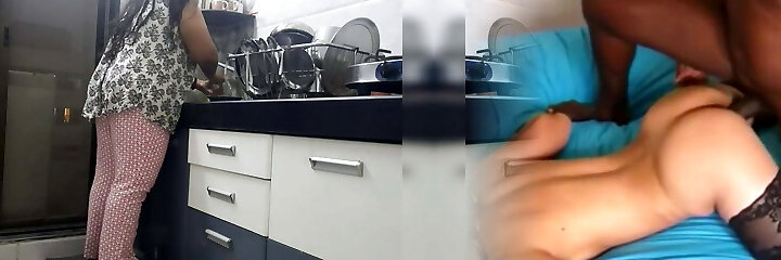 Unfaithful married dame cuckolds her hubby with a friend from work who has fucky-fucky in the kitchen while preparing food